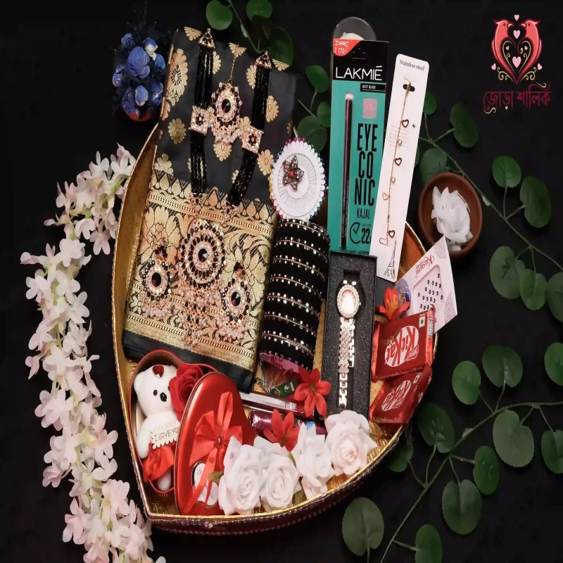 রাজকীয় ব্ল্যাক কাতান ও লাক্সারি এক্সেসরিজ গিফট বক্স - কম্বো (১৫ পিস সেট)