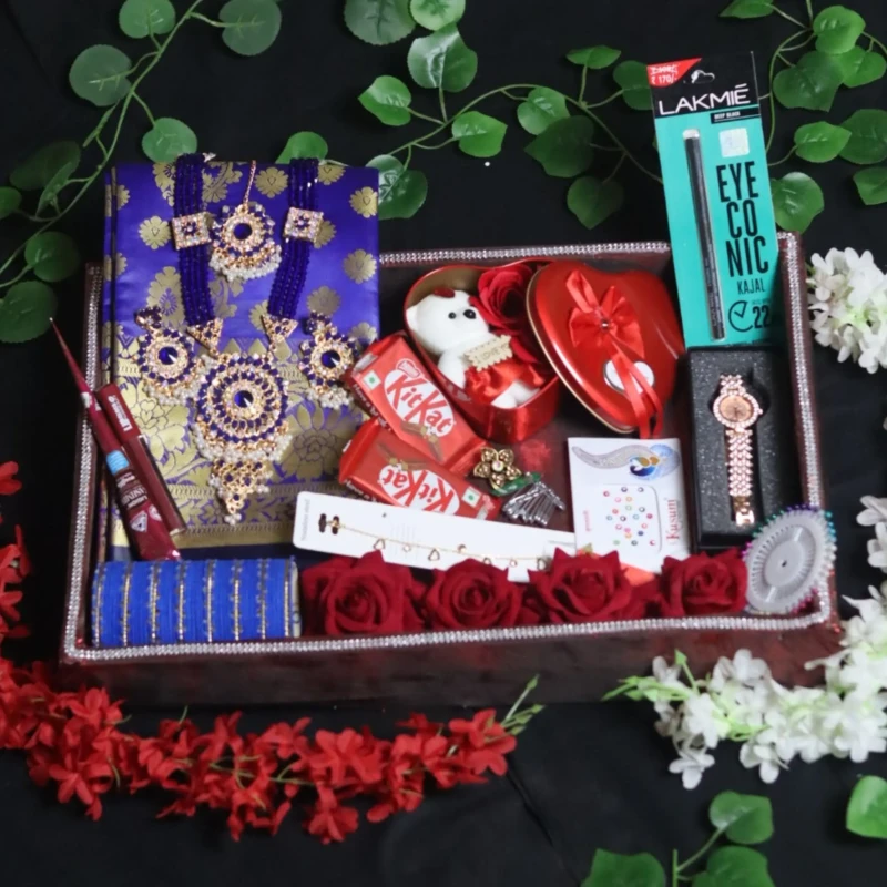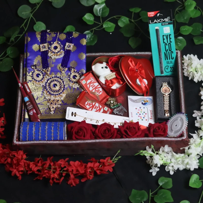 রাজকীয় রয়্যাল ব্লু কাতান ও লাক্সারি এক্সেসরিজ গিফট বক্স - কম্বো (১৫ পিস সেট)